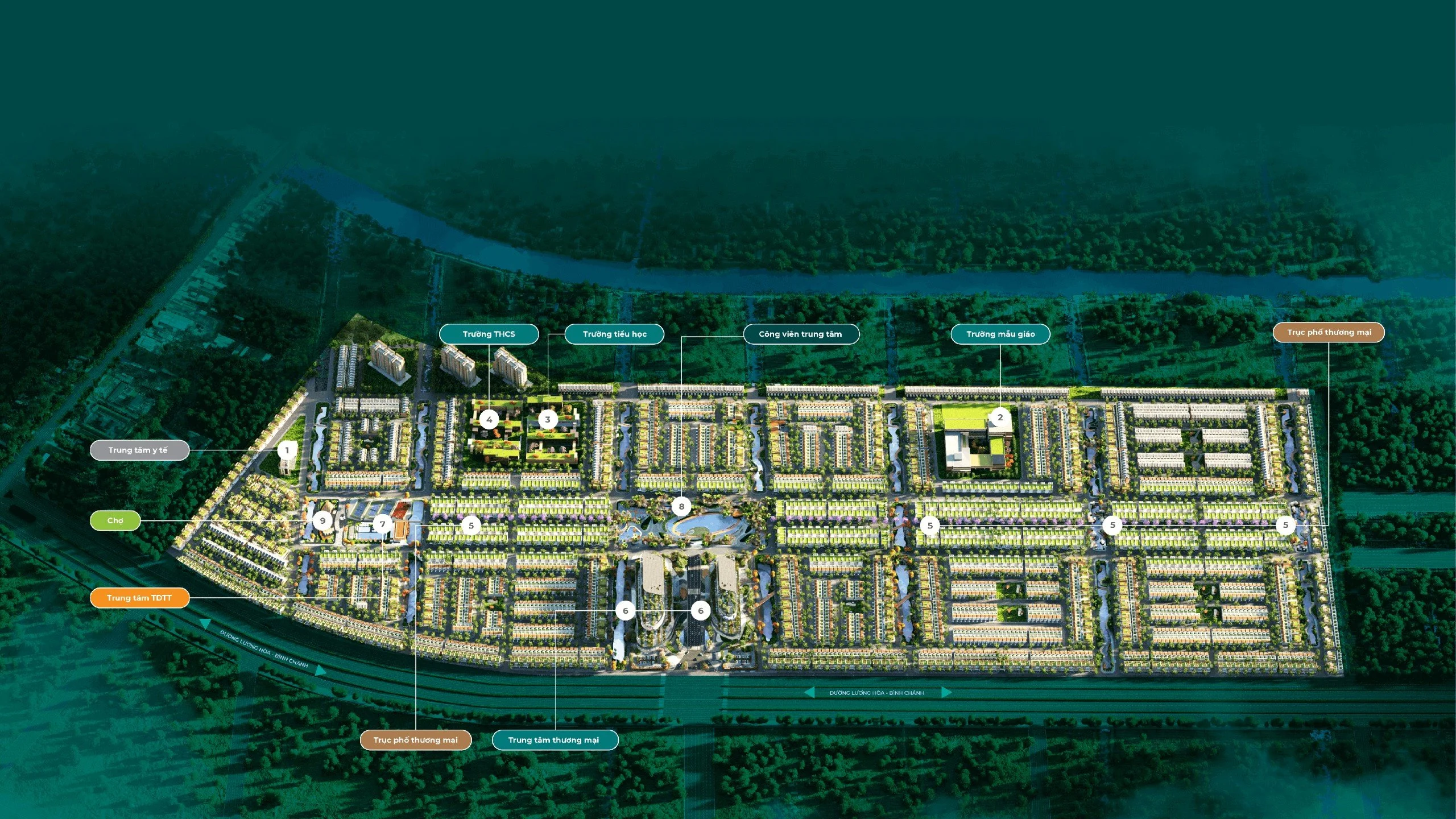Trong vòng 3-5 km, cư dân tiếp cận nhanh chóng trường mầm non đến THPT, Bệnh viện Đa khoa khu vực Bến Lức, UBND huyện, ngân hàng, siêu thị và chợ dân sinh, đảm bảo mọi nhu cầu y tế, giáo dục và hành chính đều trong tầm tay.